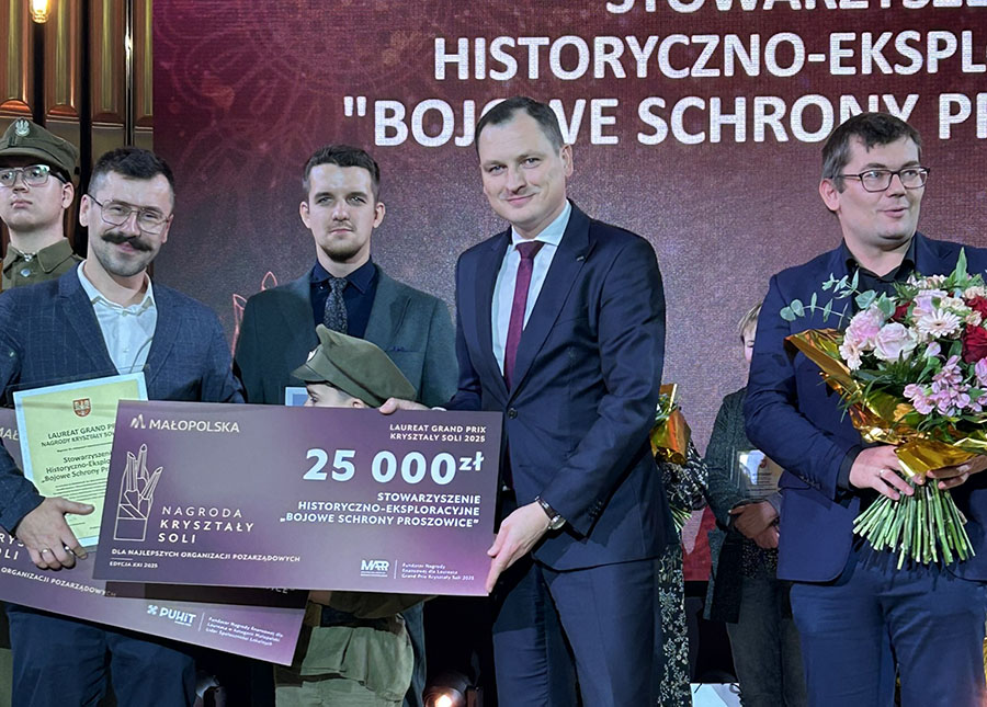 Stowarzyszenie Historyczno-Eksploracyjne Bojowe Schrony Proszowice otrzymało z rąk Marcina Kozika, prezesa Małopolskiej Agencji Rozwoju Regionalnego S.A. symboliczny czek na 25 tysięcy złotych, będący Grand Prix nagrody Kryształy Soli.