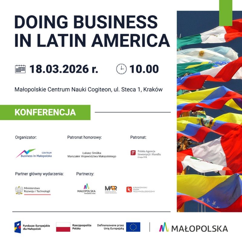 Spotkanie p.n. „Doing Business in Latin America”, odbędzie się 18 marca 2026 r. (w czwartek) w Krakowie w Małopolskim Centrum Nauki Cogiteon.