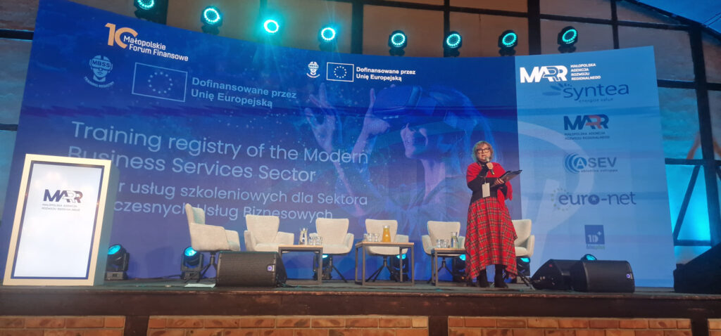Małopolskie Forum Finansowe to nie tylko inspiracje i wymiana doświadczeń, ale także konferencja prezentująca rezultaty międzynarodowego projektu „Training registry of the Modern Business Services Sector”. Projekt promuje dostęp do wysokiej jakości szkoleń dla sektora nowoczesnych usług biznesowych oraz rozwój innowacyjnych metod edukacyjnych z wykorzystaniem technologii VR/AR.